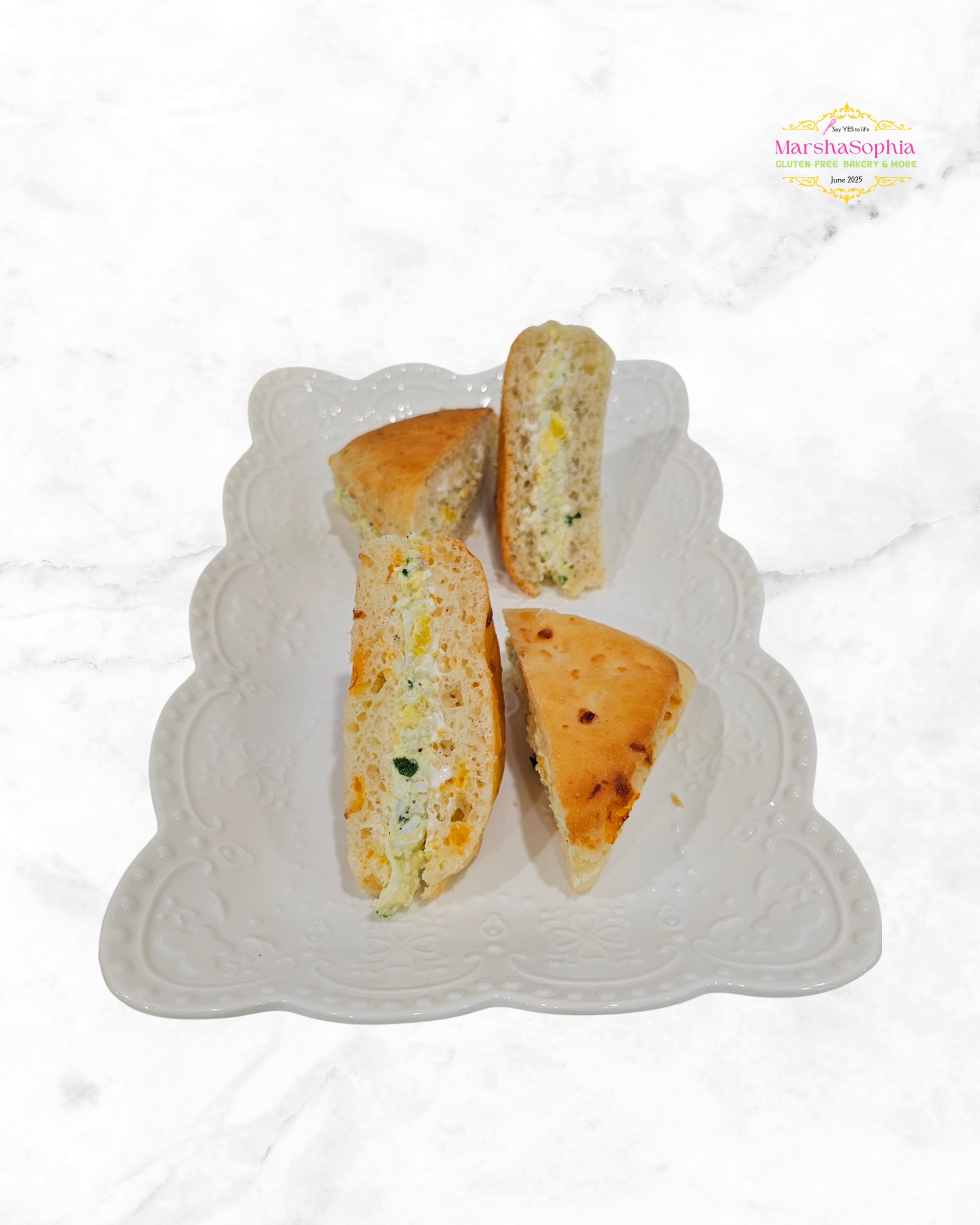 Our Egg Salad Sandwich is made fresh with creamy egg salad, vibrant kale, and a touch of red onion for a gentle lift of flavour. It’s a beautiful balance of quality protein, leafy greens, and wholesome gluten-free bread.