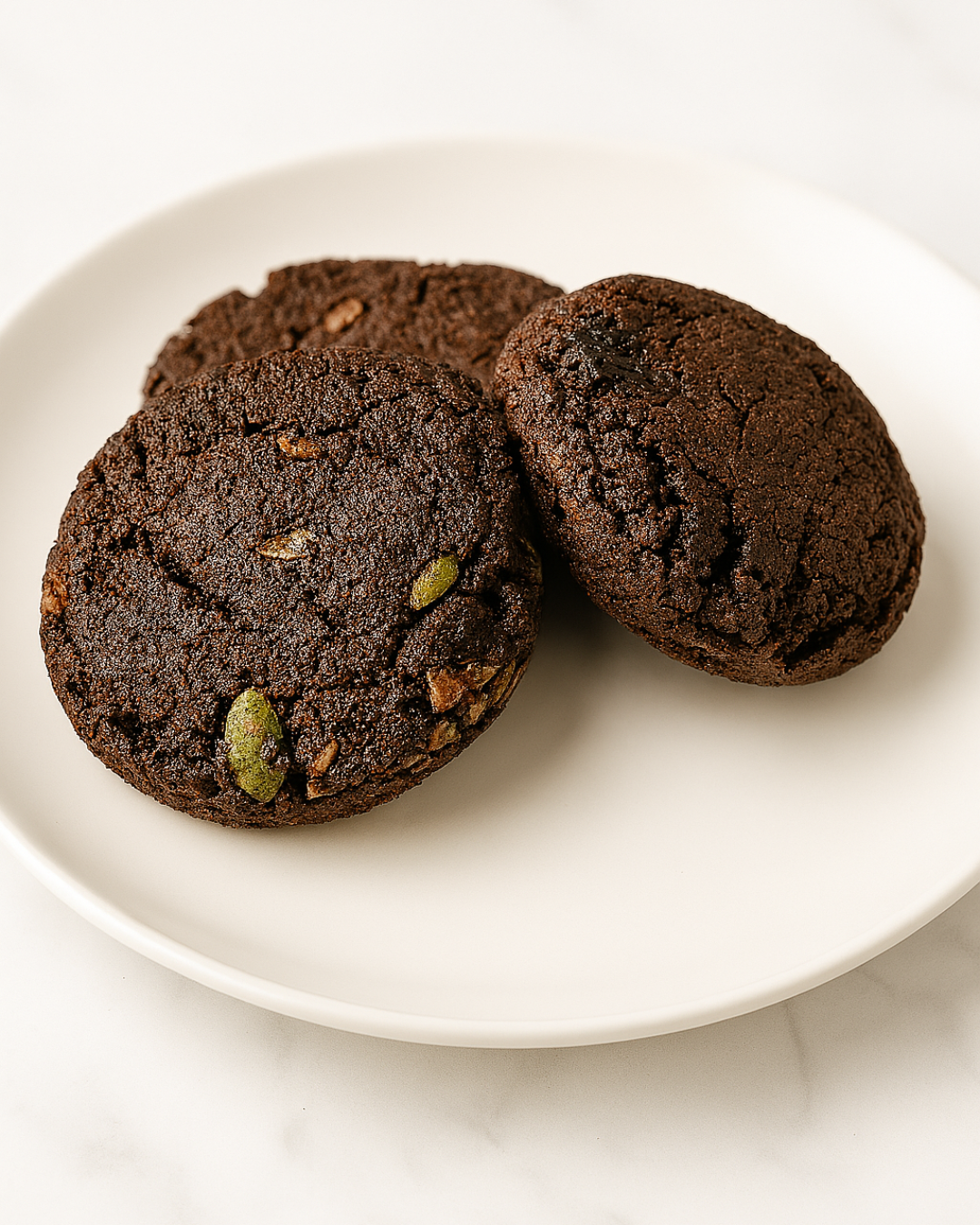 Grain-free, low-sugar double-chocolate; dark and dense.